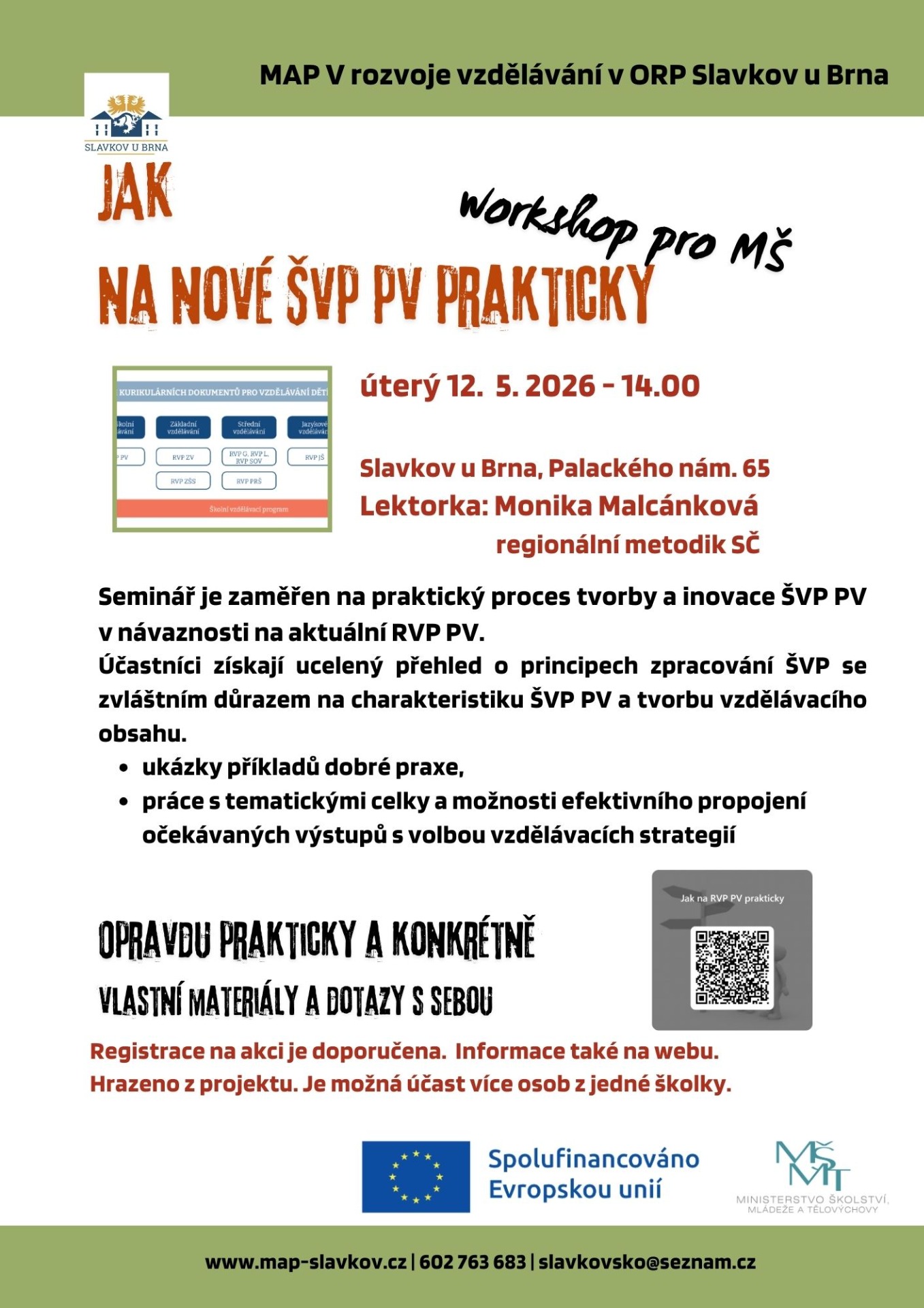 Zveme ředitelky, zástupkyně pro předškolní vzdělávání a vyučující na setkání mateřských škol Slavkovska na téma